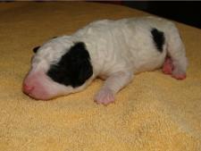 Ana, unsere Erstgeborene und Größte im Wurf, sieht aus wie Papa Basco und hat den
