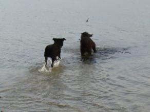 Amado, außerdem Freundin Jule. Der Höhepunkt für die Hunde war natürlich der gemeinsame Strandspaziergang am