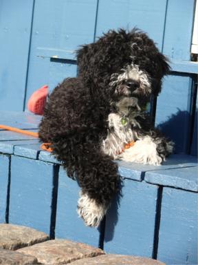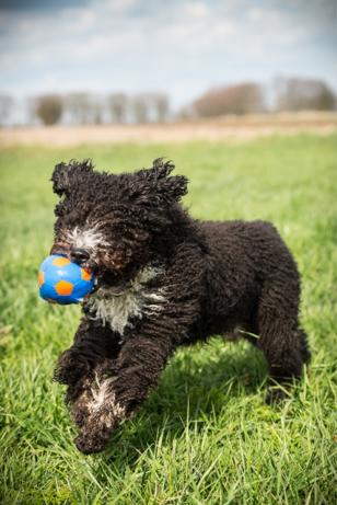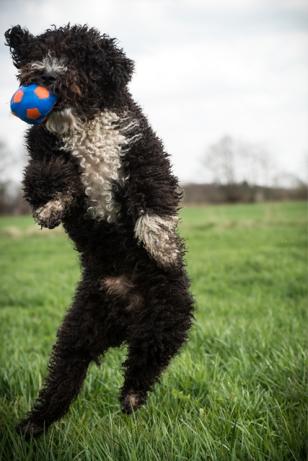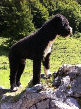 Agrado, ein einnehmendes Wesen, ist ein unternehmungslustiger Rüde.Bei der Geburt wog er 289 g und mit acht Wochen 4,29 kg.de la Casita VerdePerro de Agua Españoleinen Tag altfast acht Wochenim neuen Zuhausefast ein Jahr alt mit wunderschönem Zottelfellauch Agrado kann fliegen!UrlaubWasserhund!Wirfst Du mir den Ball?