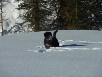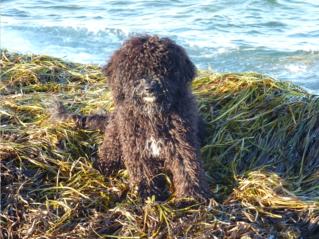 Alma, die Seele, ist ein lebhaftes Mädchen.Bei der Geburt wog sie 398 g und mit acht Wochen 4,18 kg.de la Casita VerdePerro de Agua Españoleinen Tag altfast acht Wochenim neuen Zuhause heißt sie jetzt SoffieWasserhund!Seegras ist toll!mit drei Monaten schon ein souveräner BordhundWinterurlaub: Schnee ist doch auch Wasser, oder?