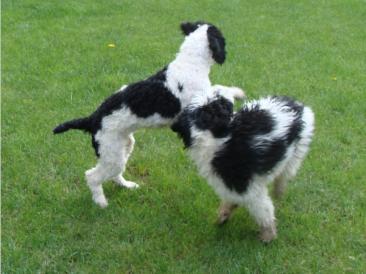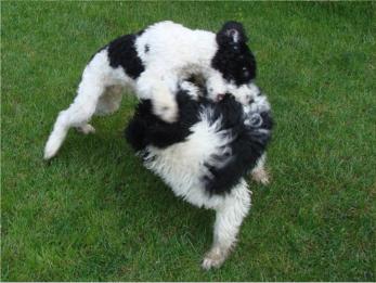de la Casita VerdePerro de Agua EspañolAn Himmelfahrt kamen Borrón und Yolo zum ersten Scheren.Beide haben sich prächtig entwickelt und sind schon fast so groß wie Mama Buena.Mit dem Bruder kann man einfach am allerbesten toben! Borrón schon geschoren, Yolo noch im ZottelpelzYolo jetzt auch mit neuer Frisur Es war so schön, Euch wiederzusehen! Und die beiden kleinen Jungs hatten sichtlich ihrenSpaß an- und miteinander, auch wenn das Wetter leider nicht so richtig mitspielte.