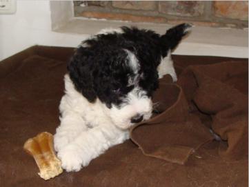 Unser B-Wurf von Basco und Buena ist am Abend des 29. Dezember 2012 geboren. Diesmal ganz der Vater: zwei weiß-schwarze Rüden. Der gesamte Wurf ist PRA-frei.Inzwischen sind es zwei selbstbewußte kleine Hunde geworden, die sich bei ihren Familien schon gut eingelebt haben.de la Casita VerdePerro de Agua EspañolBoleroBorróndie ersten acht WochenWiedersehen Mai 2013Ein Jahr alt!