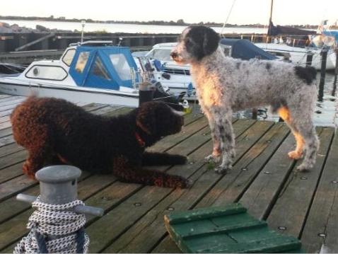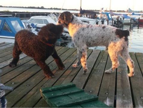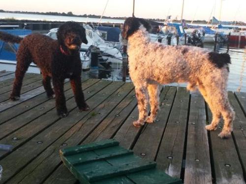de la Casita VerdePerro de Agua EspañolIm diesjährigen Segelurlaub haben wir in Stahlbrode Bascos Nichte Dana conRizos getroffen. Ihre Mutter ist seine große Schwester Alina vom Moorgraben.Die beiden hatten viel Spaß miteinander und haben wunderbar gespielt.