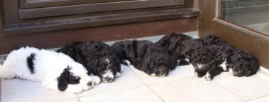 de la Casita VerdePerro de Agua EspañolWelpen de la Casita VerdeUnsere Hunde leben mit uns im Haus. Ebenso werden die Welpen selbstverständlich in unserem Wohnzimmer geborenund leben bis zur Abgabe an ihre neuen Familien mit frühestens acht Wochen mit uns im Haus, lernen den Alltag mit allseinen Geräuschen und auch den Garten kennen. Ab der vierten Lebenswoche können Besucher zu den Welpenkommen. Nachdem die Welpen geimpft sind, unternehmen wir mit ihnen und den großen Hunden bei geeignetemWetter Ausflüge an den Strand, damit sie als Wasserhunde schon einmal das Meer kennenlernen und hierbei auchgleichzeitig das Autofahren.Selbstverständlich wird jeder Wurf vom VDH abgenommen und die Welpen erhalten VDH/FCI-Stammtafeln. Außerdemwerden die Welpen mehrfach entwurmt und vom Tierarzt untersucht, geimpft, gechipt und bekommen einen EU-Heimtierausweis mit allen entsprechenden Nachweisen.Bei Interesse nehmen Sie gerne schon bald Kontakt zu uns auf, da wir die künftigen Familien unserer Welpen frühzeitigund gut kennenlernen möchten. Auch möchten wir unsere Welpen und ihre neuen Familien ein Hundeleben langbegleiten. In nächster Zeit ist kein Wurf geplant, da unsere Buena nach den Vorschriften des VDH seit Erreichen desachten Lebensjahres keine Welpen mehr bekommen darf.A-WurfB-Wurf